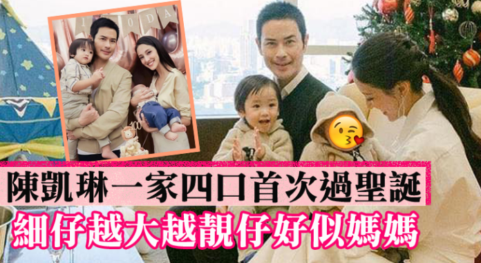 眨眼B仔已經5個多月大,Grace在社交網分享了一家四口歡度聖誕節全家福,嘉穎抱住大仔Rafael,Grace照顧細仔Yannick,畫面溫馨。