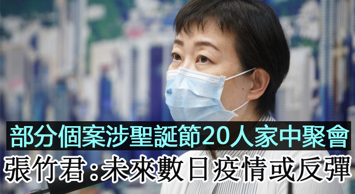 張竹君強調,聖誕期間感染的數字要一至兩星期才可反映出來,除夕等節日效應亦如是,若未來假期繼續多聚會,好難講會不會有超級傳播者,而導致疫情反彈。