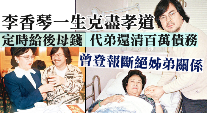 父母相繼離世,琴姐對細媽亦克盡孝道,每月按時給細媽零用錢,更叮囑工人為細媽家居執拾。其後於1996年,與琴姐同在演藝界發展的弟弟李樹佳,因欠下逾百萬賭債,琴姐乃念姊弟情代他償還。