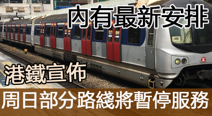 【最新安排】港鐵宣佈本周日部分路綫將暫停服務