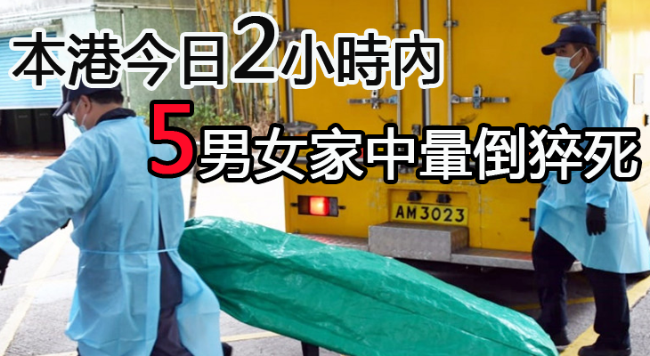 本港在今早7時至9時的兩小時內,先後有5人在寓所內暈倒猝死。