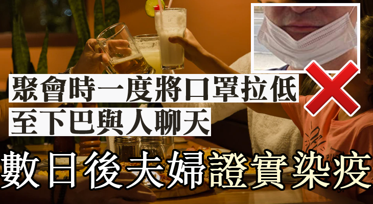 近日一對夫婦向傳媒分享染疫經歷,兩人表示當時參加聚會期間,一度把口罩拉低至鼻和下巴位置,與其他人近距離交談,結果即中招。