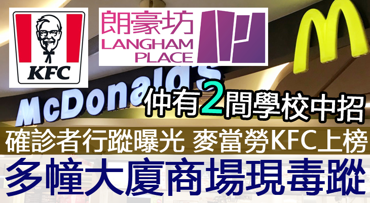 一名63歲女患者1月28日起連續三日,曾到訪黃埔明安街25號紅磡冰室、北區彩園廣場譽小館及紅磡廣場富華燒臘飯。還有多幢大廈商場現毒蹤,名單中還有兩間學校。