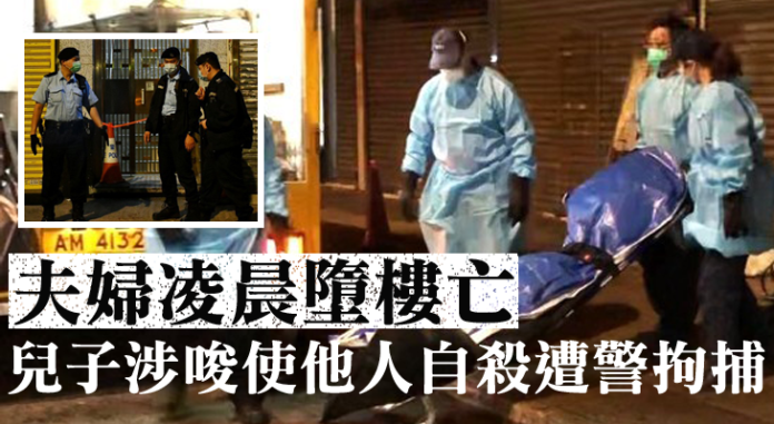 死者兩夫婦先後飛墮大廈平台,73歲男子當場死亡,66歲妻子送院後不治。一家三口因財務問題決議尋死,惟兒子最後關頭打消念頭,不排除有人涉及唆使他人自殺等行為。
