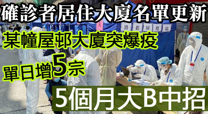 衛生防護中心更新一批確診者住宅名單,石硤尾邨美映樓突然爆發多宗個案,單日有5宗確診個案,大廈據報曾有確診者到訪。