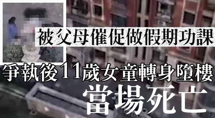 一名11歲女童,前日(18日)中午疑因功課問題與父發生爭執,從11樓的住所一躍而下,當場死亡。這件事引來大批網民熱烈討論。
