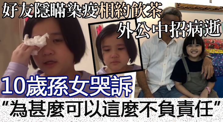 一名10歲女童近日於YouTube上載一條影片,哭訴78歲外公因朋友隱瞞病情而令外公無辜染疫,最終更因此而病逝。