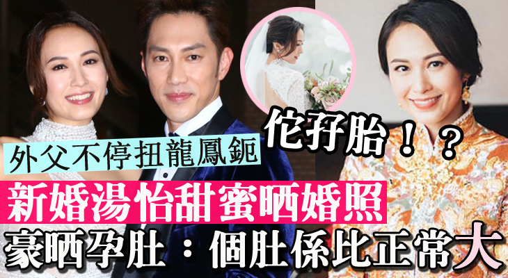 麥秋成與湯怡於元宵佳節,在陽明山莊舉行婚禮。新婚的湯怡近日在社交網分享當日的甜蜜婚照,相中見婚紗甚為貼身,豐滿身材及孕肚盡現!