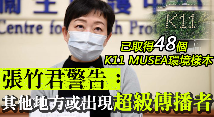 張竹君又提到,已從K11 MUSEA商場取得48個包括洗手盤底的環境樣本,暫時未有結果。