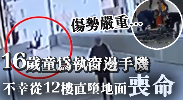 一名16歲男童為及時撿回掉出窗邊的手機,意外從12樓直墮地面,傷重不治。