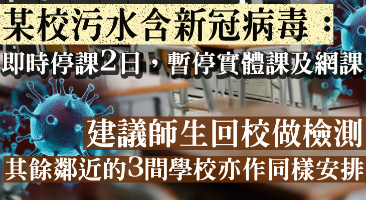 康展華於社交網站表示,衛生署於金巴崙長老會耀道小學的污水渠道抽取樣本,結果驗到有病毒。因此學校安排即時停課兩日,且暫停實體及網上課程。