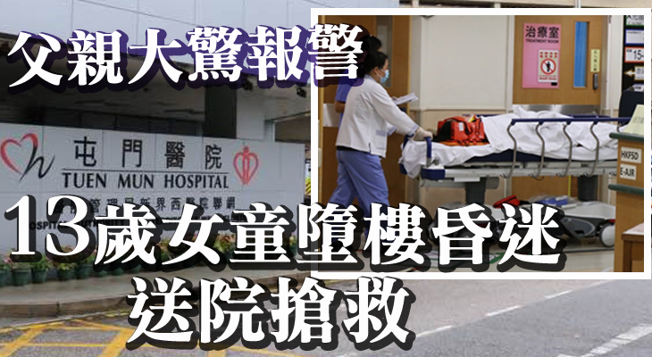 屯門發生少女墮樓案。昨日(11日)深夜11時許,屯門鍾屋村一名年約13女童,一躍而下飛墮地面受傷昏迷,父親大驚報警求助。