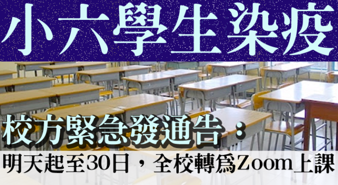 校方則在校網上公布特別消息指,學校有一名學生「確診」2019冠狀病毒病,明天學校進行全面和徹底消毒,由明天起至3月30日(星期二),全校一至六年級轉為Zoom實時視像課堂形式上課。