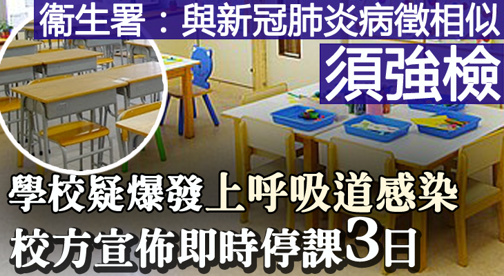早前校方接獲部分家長通知,其子女患上上呼吸道感染,學校呈報衛生防護中心後,確定學校需停校三天,期間學校會安排網上實時教學。