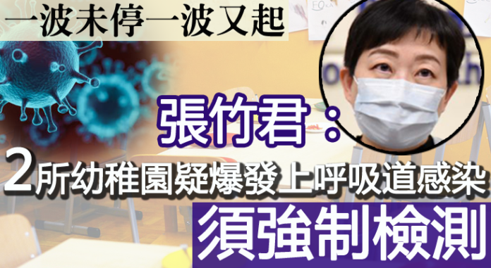 另外,張竹君於今天疫情記者會上公布,九龍塘國際英文幼稚園及深水埗浸信會幼稚園,懷疑爆發上呼吸道感染,2所幼稚園均須進行強制檢測。