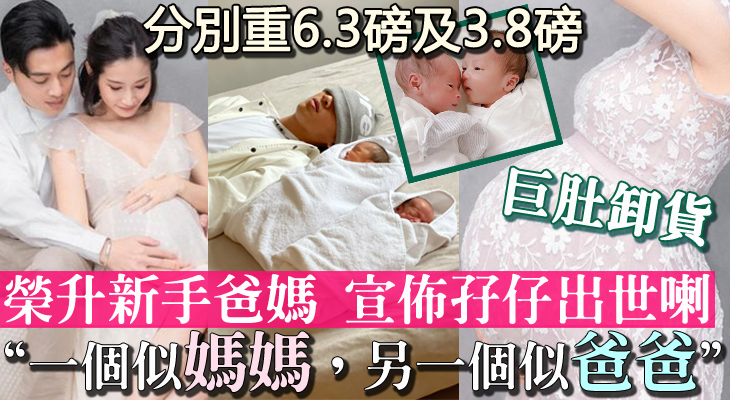 誕下孖仔Mason同Julien,分別重6.3磅及3.8磅,一個生得似媽媽,一個似爸爸。
