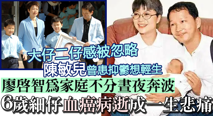 在13年裏,二人共育有3名兒子,一家五口本來樂也融融,但2003年傳來一個壞消息,3歲的細仔廖文諾發燒久久不退,去到醫院驗血後證實患上了血癌。從此一家人便走了一條艱辛的抗癌路。