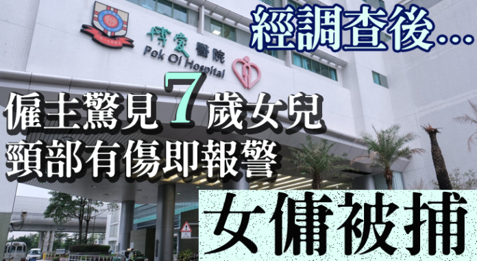 昨日(30日)晚上10時許,元朗青山公路潭尾段18號屋苑一單位,一名姓黃(39歲)女子報案,指她的7歲女兒頸部受傷,懷疑被其36歲女傭不恰當對待。