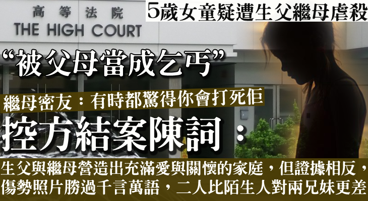 5歲女童疑遭生父及繼母虐待致死,女童最終因敗血症而死,其8歲胞兄亦受虐,兩童的親父及繼母被控謀殺等罪於高等法院受審。