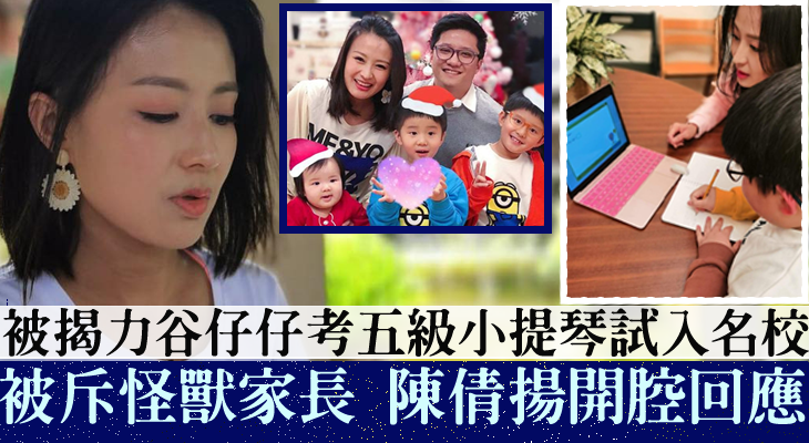 陳倩揚就此事開腔回應,她表示學小提琴是大仔興趣,剛巧遇到個好老師啟發到仔仔,而且自兒子是自小學起,稱絕對不是幾個月就谷到考5級,而細仔學小提琴都只係BB級階段。對於催谷小朋友入讀名校的指責,她就表示一直沒有透露兩個仔讀那間學校,她會繼續因材施教,令兒子愉快學習。