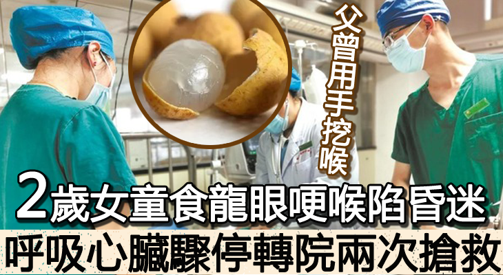 一名2歲女童在吃龍眼時意外哽塞喉嚨,爸爸嘗試用手將龍眼挖出,但不成功。女童隨後出現窒息,陷入昏迷,並一度心臟停頓……