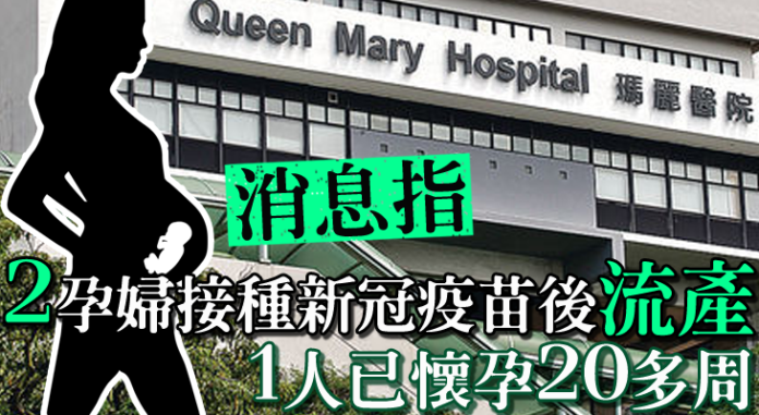 據了解,有2名30多歲女子在接種復必泰疫苗後流產,2人分別到瑪麗醫院及伊院求醫,其中一人已懷孕20多周。而其中一名孕婦曾於本月8日接種復必泰疫苗,3日後因下體出血而到瑪麗醫院求醫,其後證實流產。