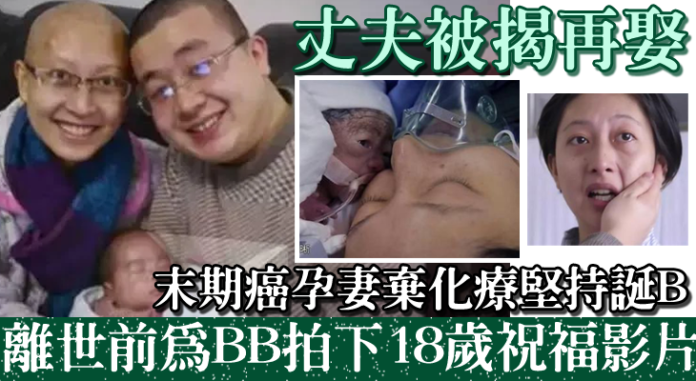 一名女子在懷孕期間證實患有癌症末期,為保腹中胎兒寧願不做化療,只希望可以把孩子下來,讓孩子在接下來的日子陪伴丈夫。女子於誕B幾個月後不敵癌症離世,惟其丈夫被揭發於一年後再婚。他解釋指,希望可以讓孩子有個媽媽。