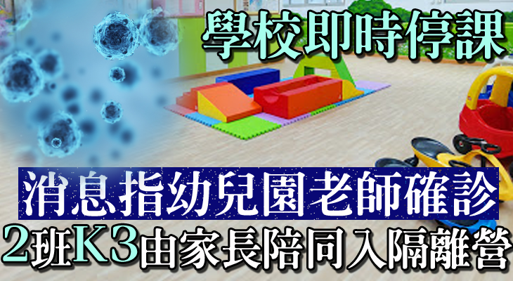 另外,據知綠茵英文(國際)幼兒園(日出康城)一名老師昨日初步確診,有兩班K3的學生被衛生防護中心列為密切接觸者,學生需由一位家長陪同進入隔離營。學校今日停課一天。