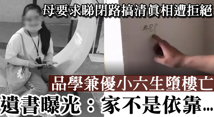 【母要求睇閉路搞清真相遭拒絕】品學兼優小六生墮樓亡 遺書曝光:家不是依靠