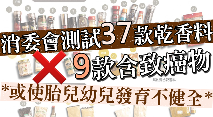 消費者委員會測試市面上37款乾香料樣本,包括廚房常備的胡椒、薑、蒜、咖哩及混合香料,發現9款(24%)含有黃曲霉毒素(aflatoxins)及或赭曲霉毒素A(ochratoxinA),其中1款咖哩粉的黃曲霉毒素總含量超出本港法例要求及歐盟標準限制。