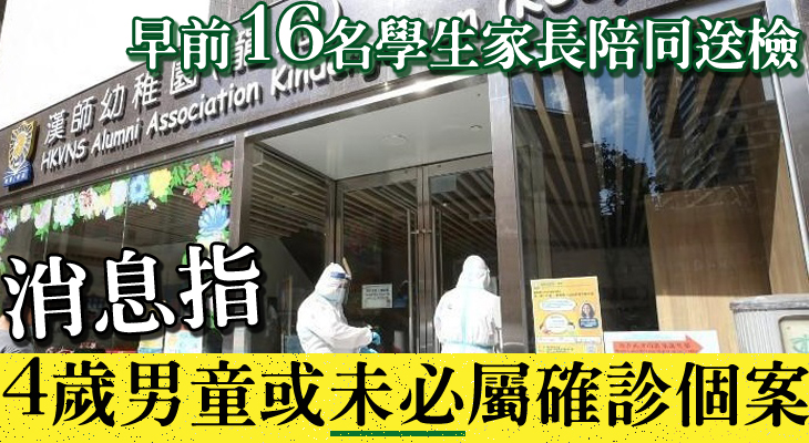 衛生防護中心上周六(15日)公布,就讀何文田漢師幼稚園(龍總)K1B的4歲男童(個案編號11822)確診新冠肺炎,屬源頭不明個案。