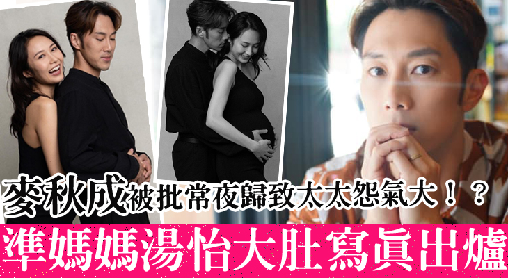 大肚婆湯怡從後攬實老公,另一張相麥秋成也和她一齊摸住BB,畫面相當甜蜜!