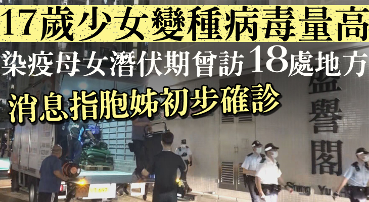 確診的17歲少女感染新冠肺炎N501Y變種病毒,屬本地無源頭個案,也是本港首宗社區源頭不明的變種病毒個案,樣本的CT值約為18,代表病毒量高。
