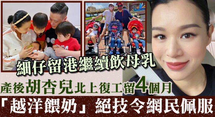 杏兒說:「其實都好唔捨得離開兩個仔,尤其係啱啱出世嘅Liam,好彩有奶奶幫手。而我會繼續餵母乳,將揼出嚟嘅奶冰鮮再直送返香港,越洋餵奶。醫生都建議BB出世後,最好飲母乳半年。」