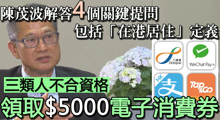 財政司司長陳茂波今日在網誌再談及政府的5000元電子消費券細節,並就4個常見問題再作解釋。