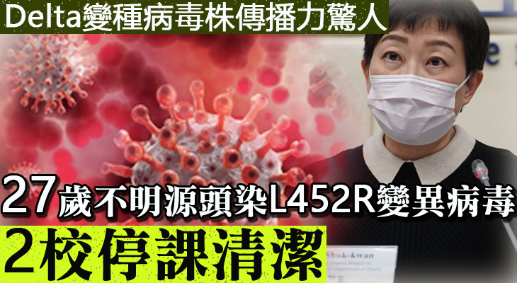 衛生防護中心總監林文健早前曾指出,最新流行Delta變種病毒株的傳染性、病情嚴重性比起其他病毒株更加高,尤其L452R對未接種疫苗及青年人更加高危。確診者及家人無接種疫苗,提醒市民要盡快接種新冠疫苗。