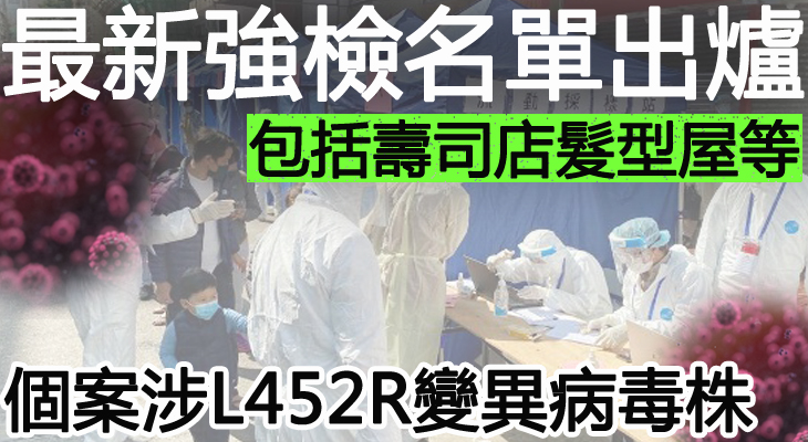 最新資料顯示,除了昨日公布的7個指明地方外,涉及L452R變異病毒株的本地確診個案亦曾身處4個指明地方。(詳細:【染疫機場工人行蹤曝光】政府公佈最新強檢名單 包括麥當勞及海洋公園 http://mybblink.online/k/b2EMX)