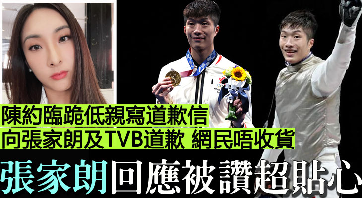 【陳約臨跪低親寫道歉信 向張家朗及TVB道歉 網民唔收貨】張家朗回應被讚超貼心