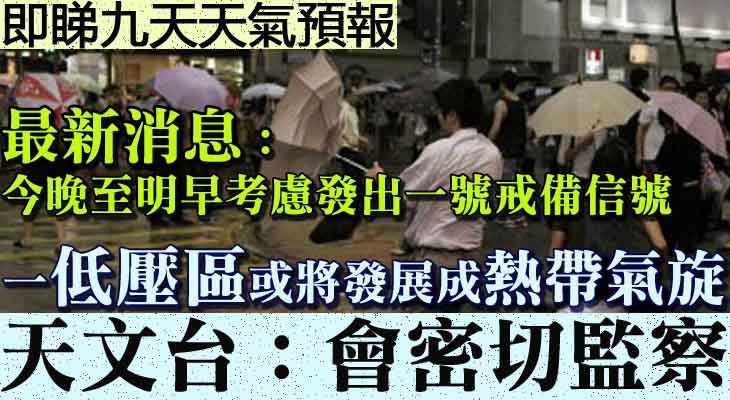 最新消息,天文台會視乎該低壓區的發展及動向,在今晚(2日)至明早(3日)考慮發出一號戒備信號。另外,雷暴警告現正生效,預料新界東部、香港島及九龍有局部地區雷暴。