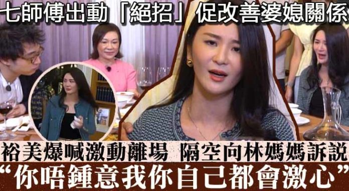 節目後半段,裕美突然出現兼尷尬入座,原本找到失散妹妹的林媽媽不斷單打裕美:「我一世人得你一個仔,希望做我媳婦嘅大家要互相傾得來,係外面唔好咁多嘢,因為我係一個傳統嘅女人,唔想睇咁多亂七八糟嘅嘢。」