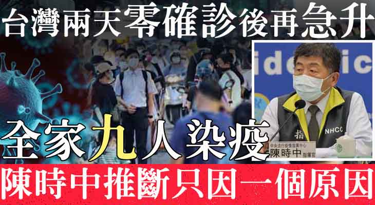 台灣連續2天零確診後,過去一日新增13宗新冠肺炎本土病例,單是三峽家庭群聚感染就佔9宗。另外有10宗為境外輸入個案,再多1人不治。