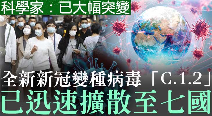 可是,一波未平卻一波又起,國際醫學期刊《自然》(Nature)最近發表一項報告,指科學家5月在南非發現新型的新冠變種病毒「C.1.2」,已散播至7個國家,包括中國、英國、紐西蘭、瑞士、葡萄牙、毛里求斯和剛果民主共和國。