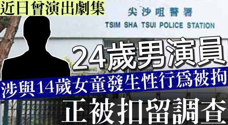 消息指,被捕的24歲男子報稱演員,近日曾出演電視劇集,早前他透過交友平台結識一名14歲女童,至8月中,他帶女童到尖沙嘴一間酒店發生性行為。