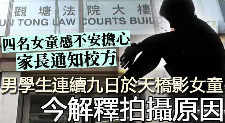 一名男學生在今年4月,連續九天在秀茂坪一行人天橋上,拍攝女童在天橋行走的片段,後來有家長發現事件並通知校方,最後要報警處理。