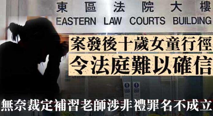 一名補習社導師涉嫌在6年前,非禮當時讀小五的10歲女學生,包括伸手進女童的衣服捏胸、用手指插入女童肛門。男導師否認控罪受審,案件今日在東區裁判法院裁決。