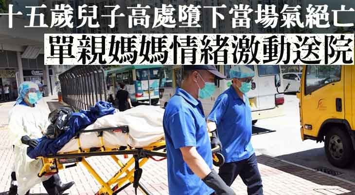 秀茂坪一名15歲少年昨日被發現在安泰邨恆泰樓一單位墮樓,當場證實死亡,其40歲母親獲知兒子死訊後情緒激動,需送院治理。