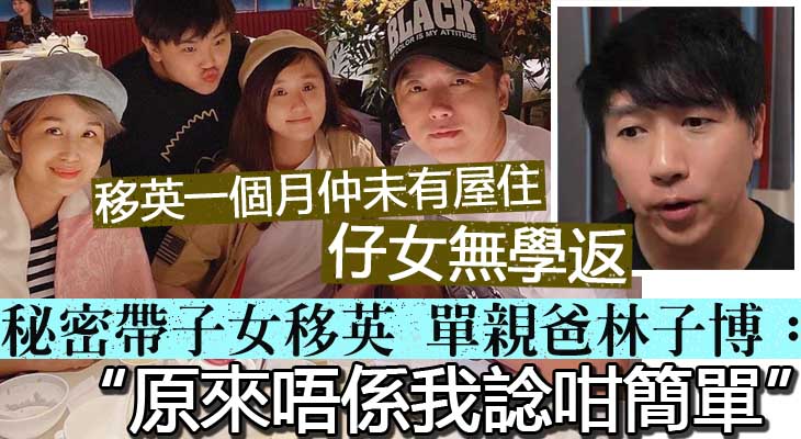 50歲林子博上個月帶同16歲長女詠渝及12歲細仔卓楠秘密離港,到英國展開新生活。昨天子博開設頻道,并拍片交代目前移英近况。