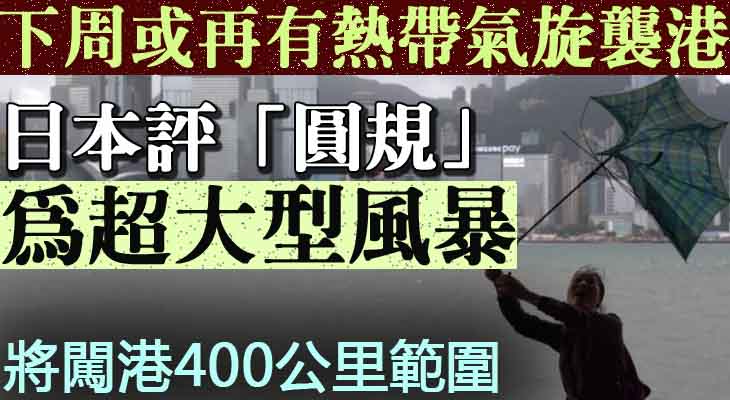 歐洲預報系統則料,下周二(12日)至周四(重陽節)或逼近本港400公里範圍內,與內地中央氣象台的預測相若。日本氣象廳亦將圓規評定為「超大型」風暴,7級強風圈(時速30海里或以上)半徑達到950公里,最大風速達每秒18米,最大瞬間風速每秒25米。
