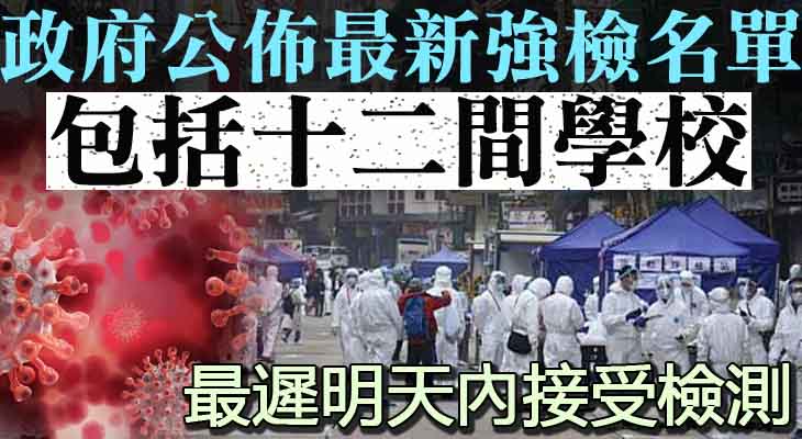 【最遲明天內接受檢測】政府公佈最新強檢名單 包括12間學校