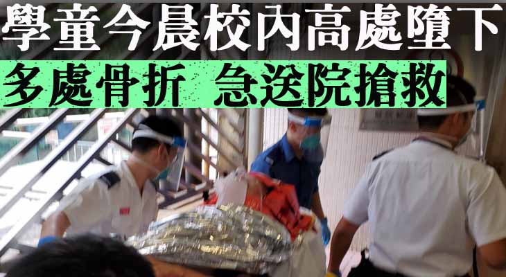 今晨(25日)8時36分,一名學童在翠屏道一中學校舍內高處墮下,手及頭部受傷流血,倒臥學校對開地面,有教職員大驚發現後馬上報警。